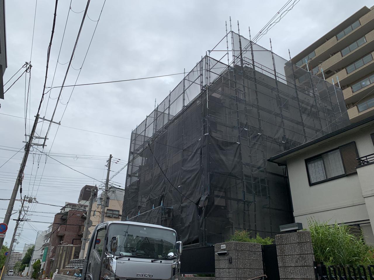 一枚目大阪府河内郡外壁塗装用足場、 二枚目浪速区鉄骨新築足場